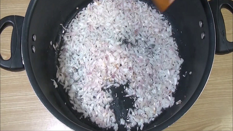 ابتدا 2 عدد پیاز را خرد کرده و در روغن به مدت 2 دقیقه سرخ کنید.