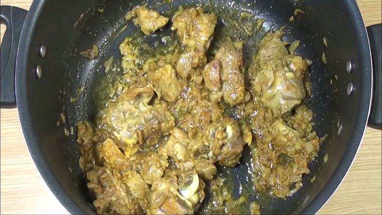 در مرحله بعد زردچوبه را اضافه کرده و 2 دقیقه دیگر سرخ کنید و 8 پیمانه آب اضافه کنید.